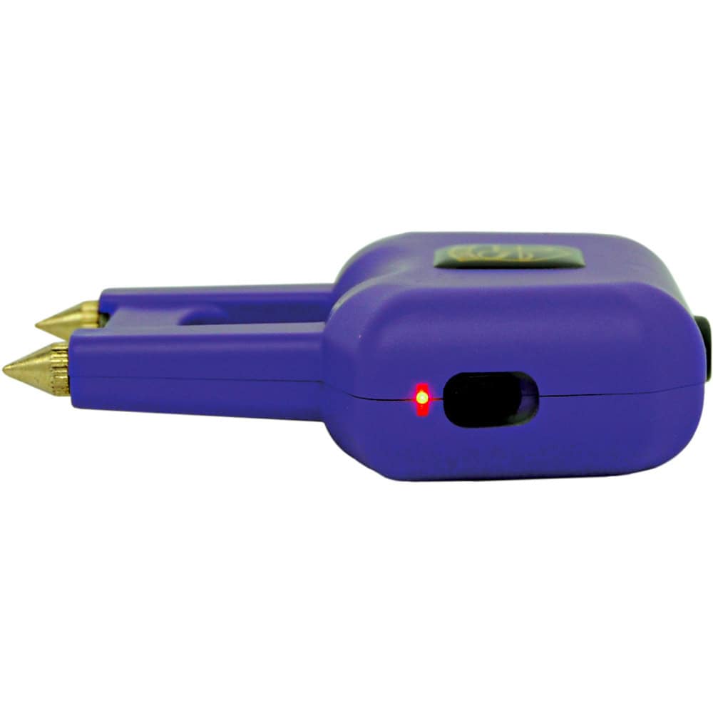Standard stun gun electrodes may not penetrate heavy clothing effectively. The Spike’s pointed electrodes are designed to push through fabric layers and make direct contact with skin for maximum effect.